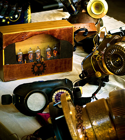 “Steampunk” started as a sub-genre of science fiction typified by a fascination with steam-powered machinery and alternative histories, with stories frequently set in Victorian England. Today, Steampunk has grown into an aesthetic movement all its own, with influence in art, fashion, design and music.